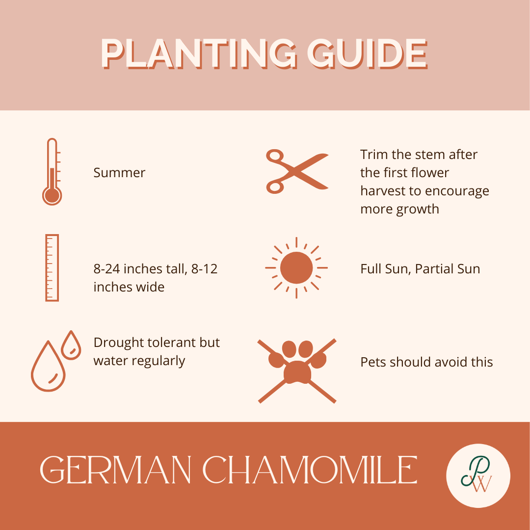Matricaria chamomilla - An herbal annual favorite, German Chamomile is best known for its soothing teas, skin care products and beautiful tiny white blooms. It grows best in full sun but here in Georgia, it has a short growing season since it doesn’t tolerate our hot heat well.