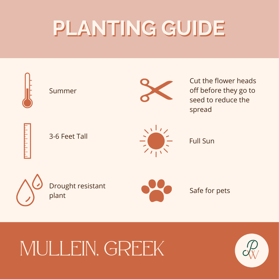Greek Mullein is preferred for flower production while Common Mullein is preferred for leaf production. We suggest picking one variety and sticking with it so they don’t hybridize.