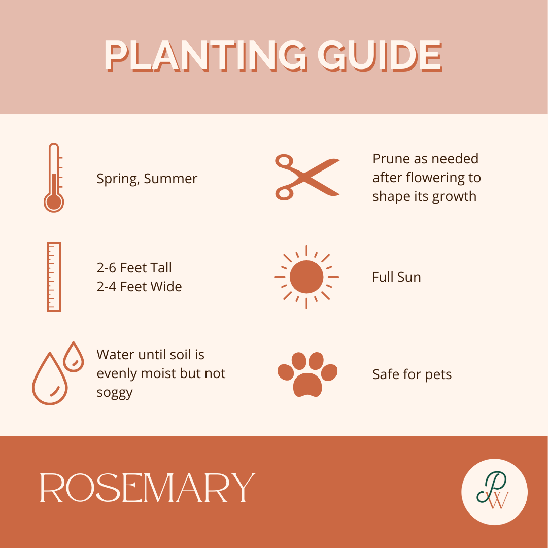 Tip: Rosemary makes a great herbal “hedge” for a garden bed or as a tall addition to a container garden. We like to use Rosemary as topiaries in the winter months for our front patio containers.