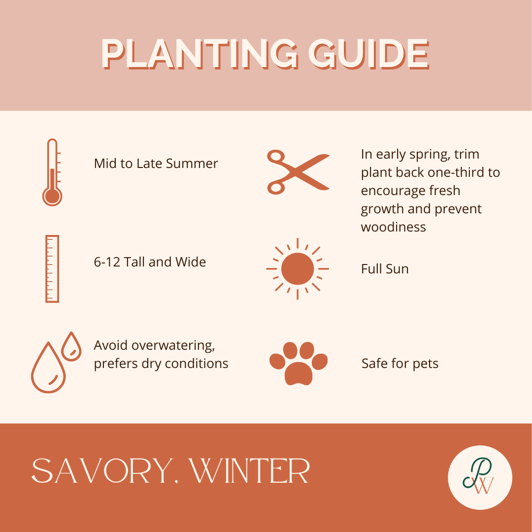Tip: Besides adding to culinary gardens, Winter Savory makes a great edging plant for walkways, where its fragrant leaves release their scent when brushed against.