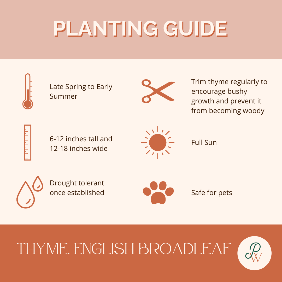 Tip: Besides adding to culinary gardens, English Broadleaf Thyme makes a fragrant ground cover or edging plant, releasing its delightful aroma when stepped on or brushed against.