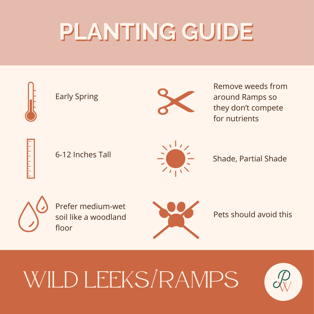 Tip: A great native to fill in a woodland garden and provide a “fairy effect”. Companion plant with other woodland flowers such as bloodrot, trillium, and trout lily. Their flavor is a combination of spring onion and garlic and are delicious eaten on their own, used to flavor salads or other dishes, or you can dehydrate and grind them down into a seasoning.